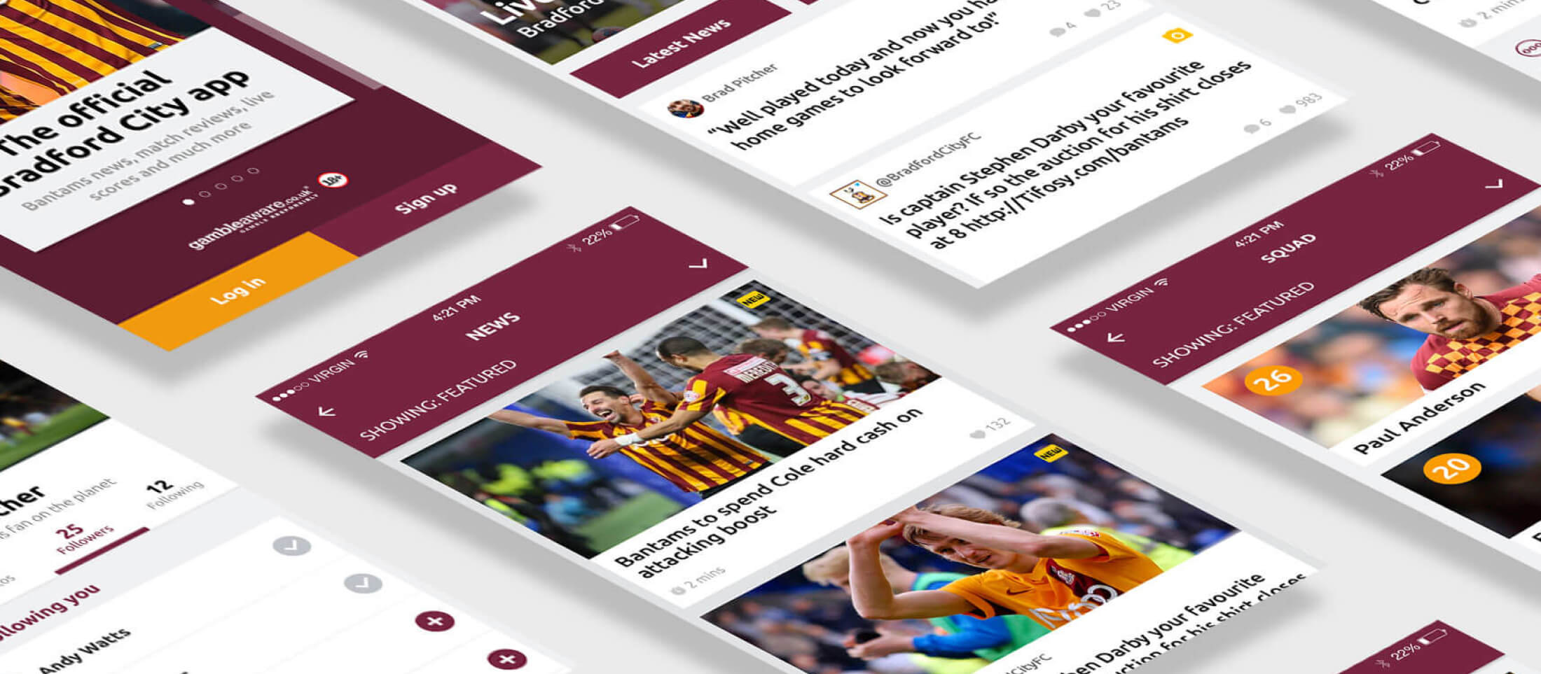 We launched initially with Bradford, with all the other club apps ready to go. Unfortunately the project was pulled when it was realised the betting income wouldn't be enough to justify the cost. This was very frustrating but I'm incredibly proud of my work
