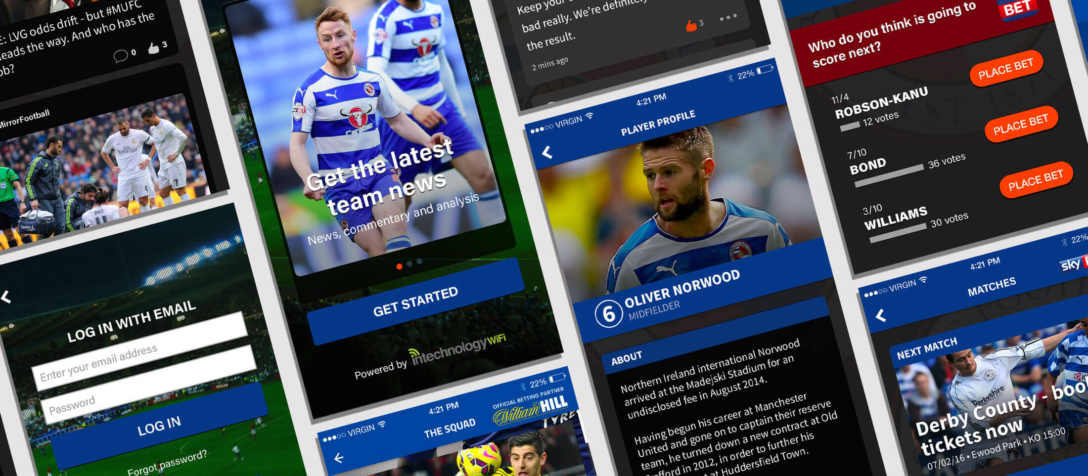 The app allowed fans to get closer to the clubs, featuring club news, match results, live match commentary, player profiles and in-game betting. I was responsible for the design of two templates that clubs could choose from as their official club app, with each being individually branded and colour-coded. This was a really exciting project to work on!